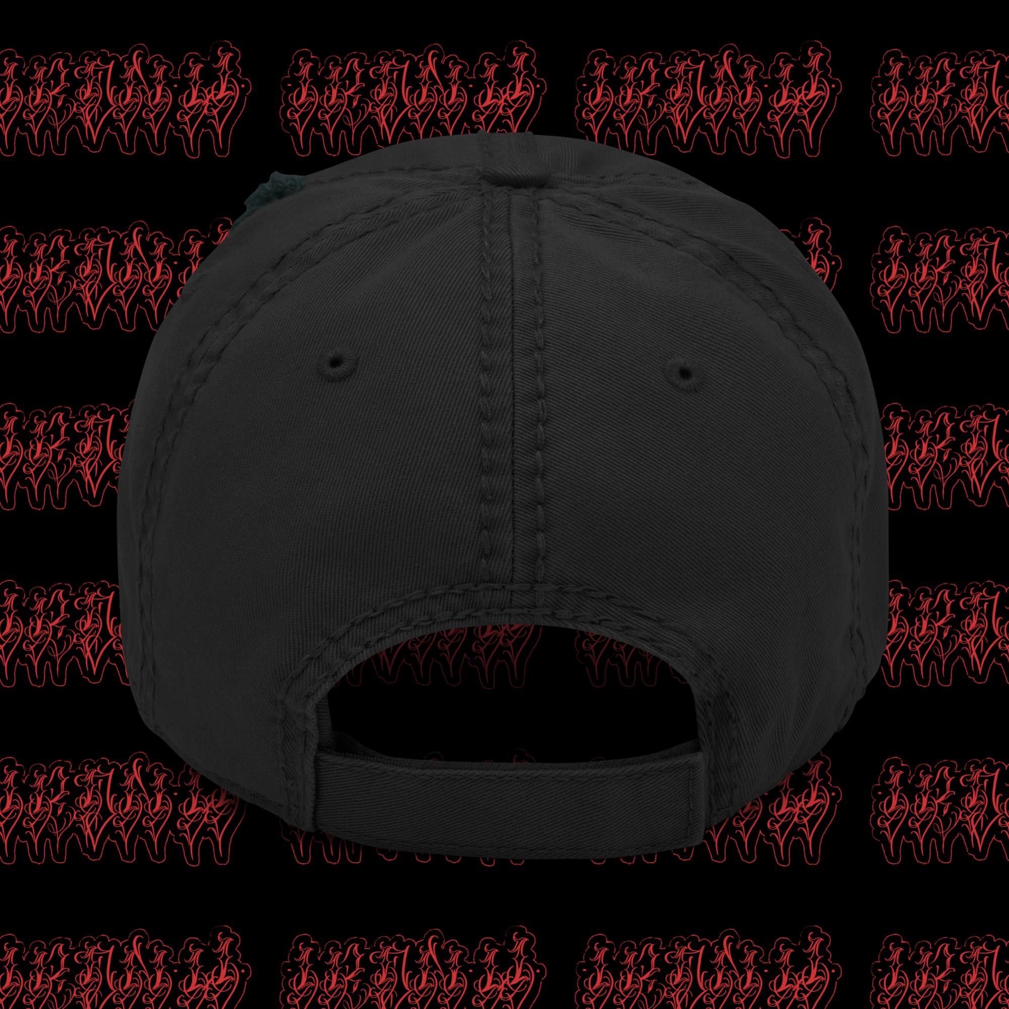 Iron K dad hat. With a slightly distressed brim and crown fabric.